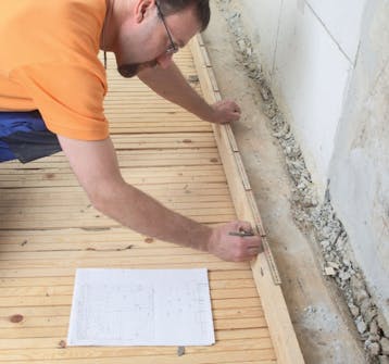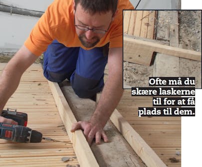 Det sidste bræt ind mod væggene bliver meget nemmere at få på plads, hvis du skærer det til og saver det på skrå efter følgende opskrift: