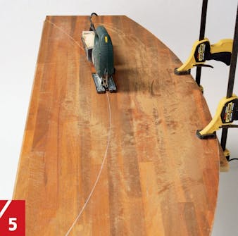 Sav barpladen ud med en stiksav. For at undgå flossede kanter bør du save fra bagsiden, hvis ikke de to sider er lige pæne. Tegn lysbaldakinen ud efter barpladen, og sav den ud; så slibes kanterne på begge plader.