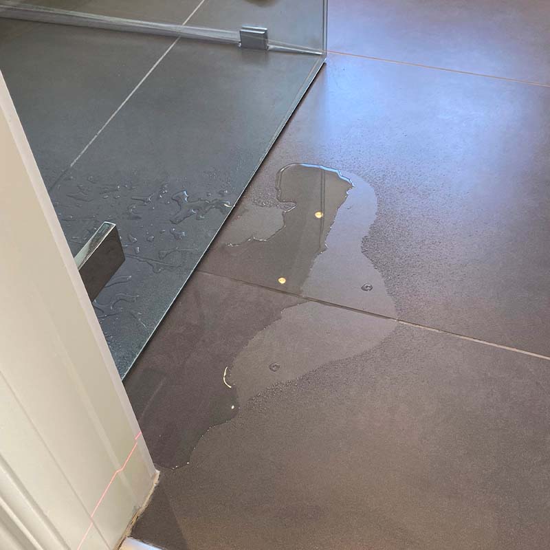 Det er en klassisk, men også meget alvorlig fejl: Gulvets hældning fører væk fra de afløb, der skal lede vandet væk.