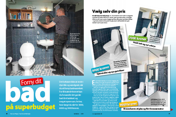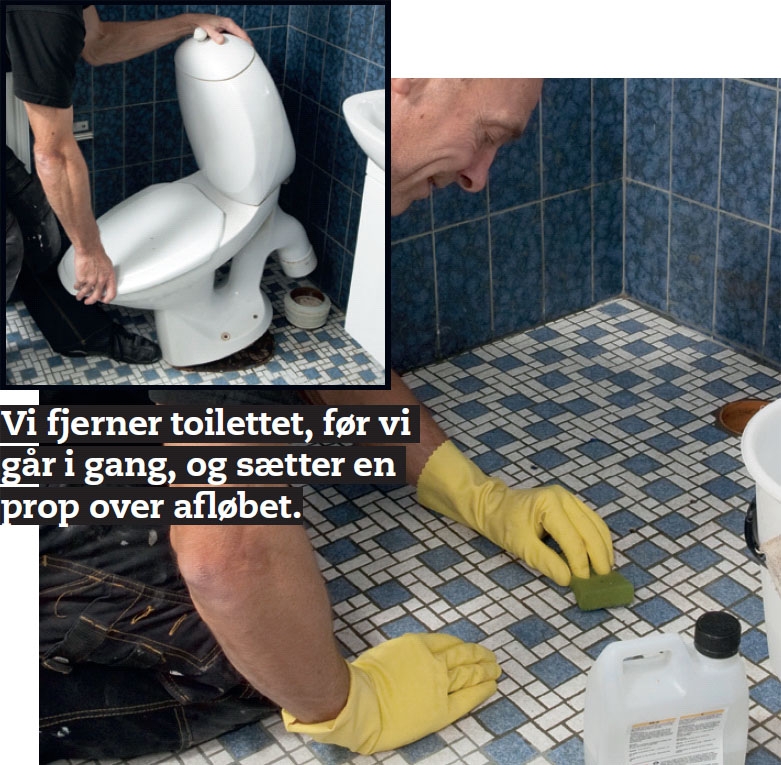 Men nu koster det lidt mere. For at lægge hvide fliser oven på de gamle mosaikstifter og skifte til et nyt og vandsparende toilet skal vi finde yderligere 3000 kroner frem, så det samlede budget når 6000 kroner.