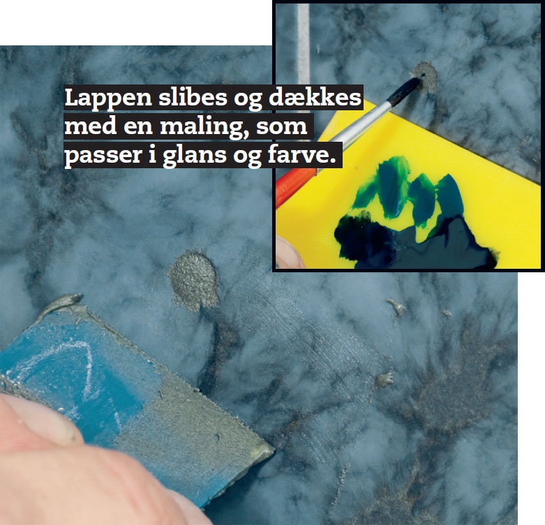 De gamle huller fylder vi op, hvor de ikke passer til det nye udstyr. Bedst er en hård reparationsmasse som kemisk metal eller glasfiberspartel.