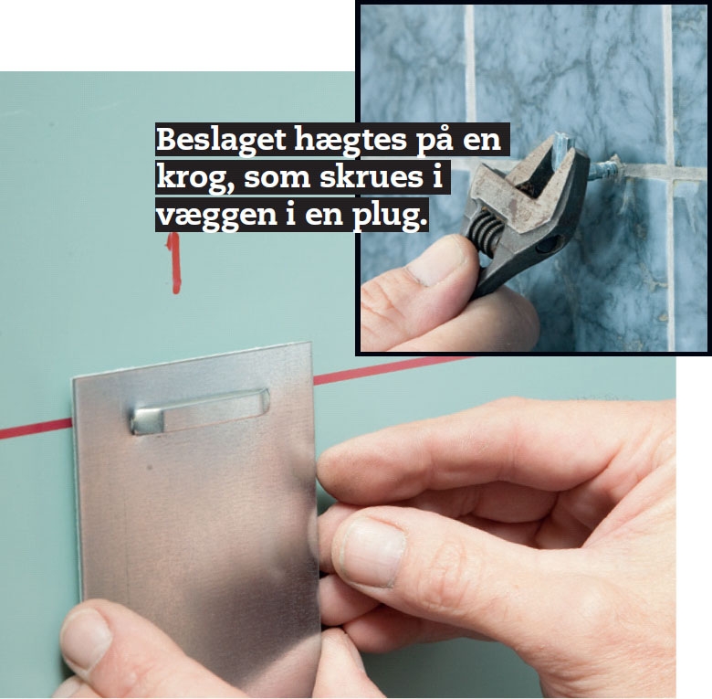 TIPS: Anbring beslagene, så højden passer med en fuge mellem fliserne.