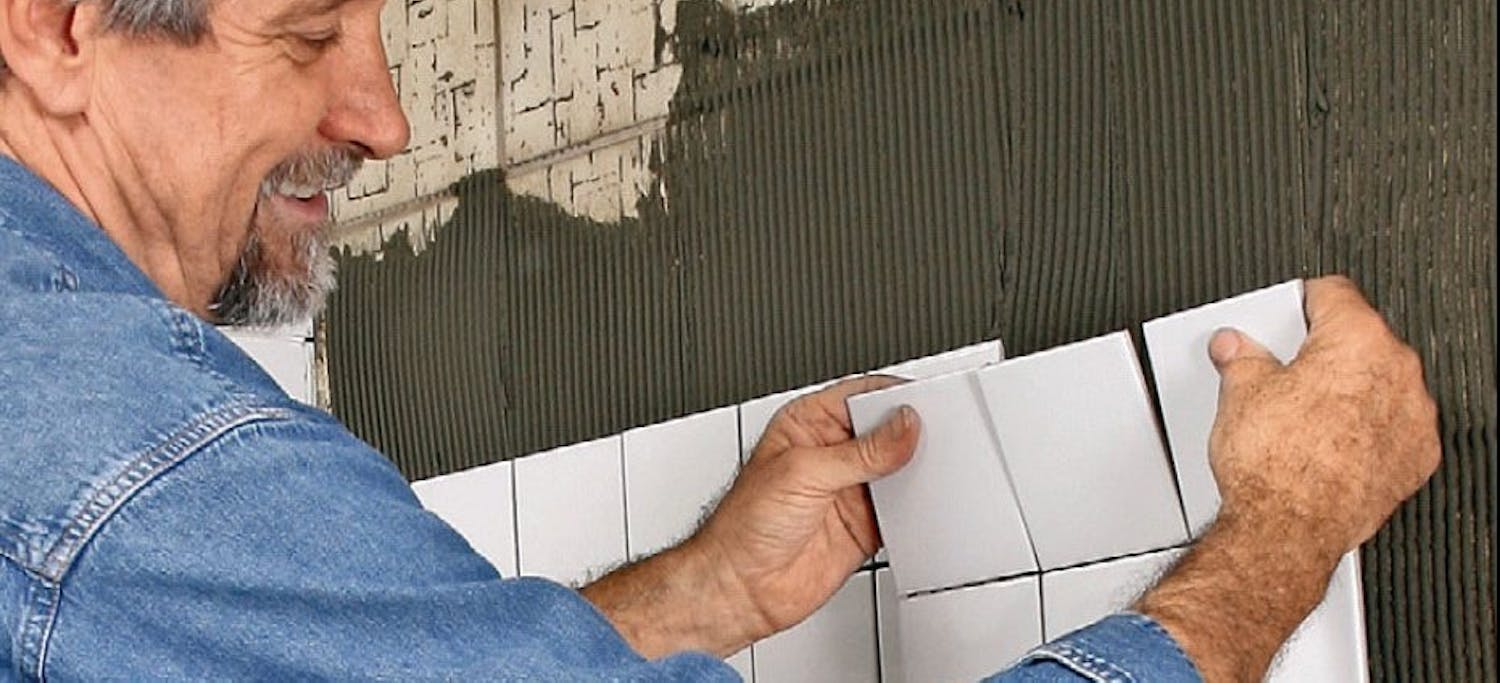I stedet for blot at spartle de gamle fliser over sætter vi nye vægfliser udenpå.