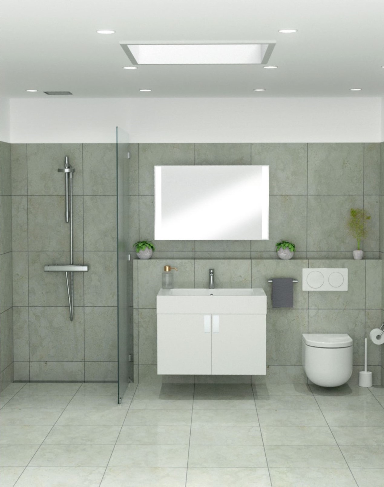 Tidens trend peger på fliser i storformat. Vi finder fliser i betonlook i formaterne 75 x 75 og 75 x 150 cm.