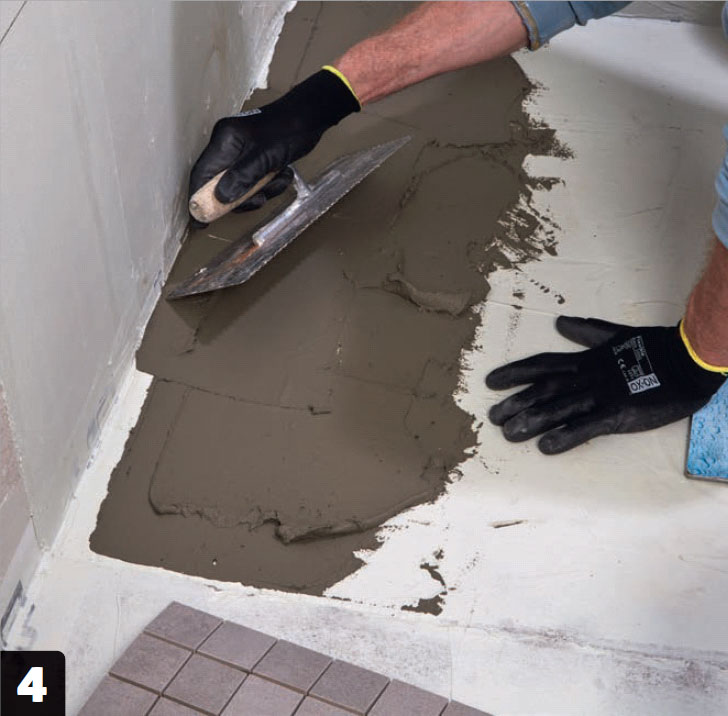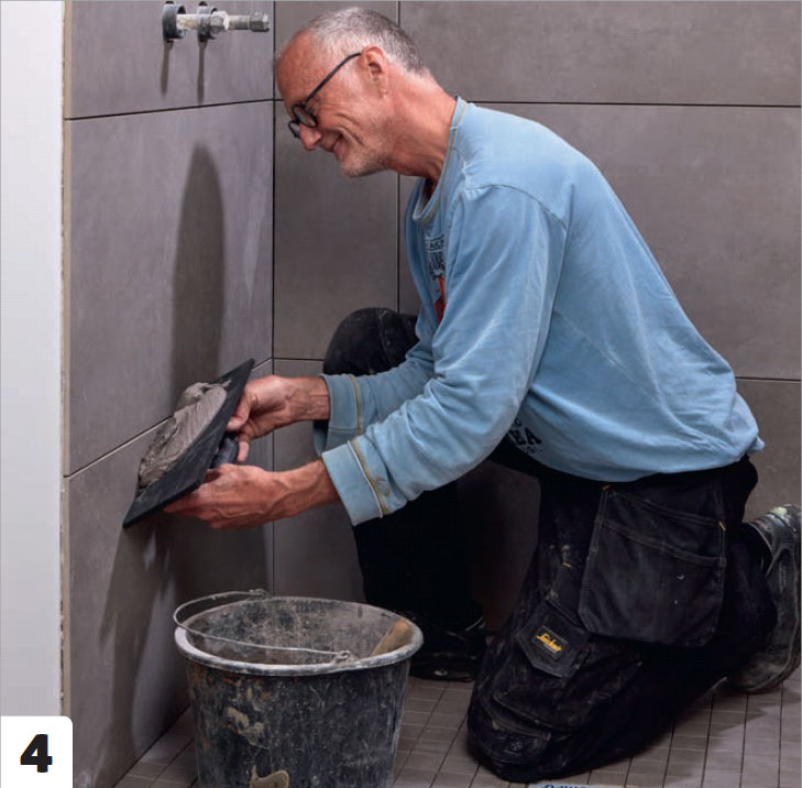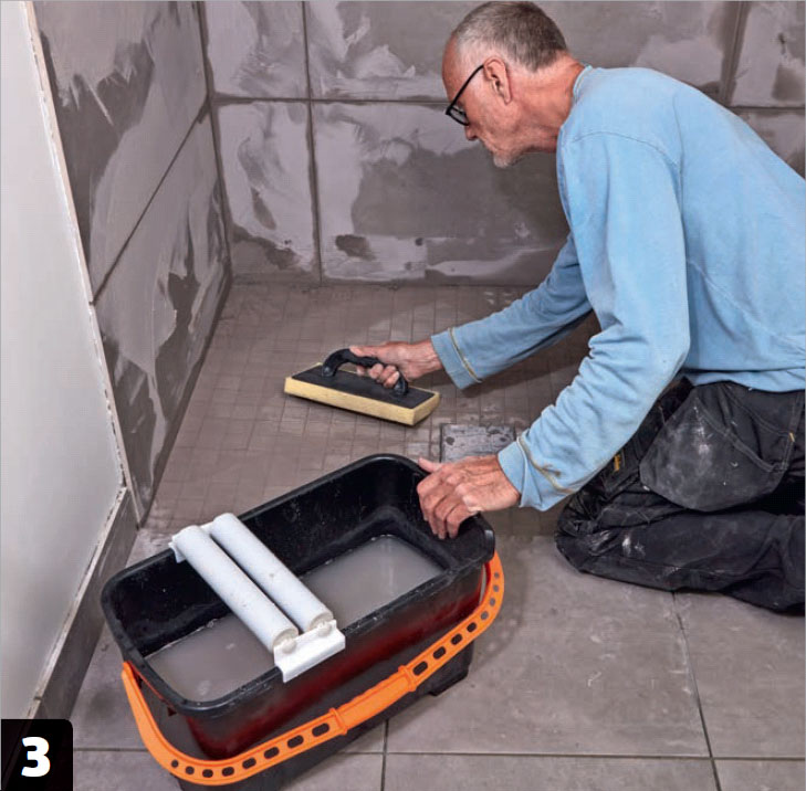 Vi slutter af med fliserne på gulvet. De skal fuges på samme måde, som vi gjorde med væggene.