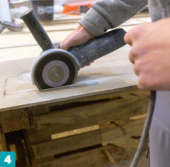 Skær hullet ud i flisen med en vinkelsliber. Det kan være en god idé at skære igennem flisen og ned i et underlag af træ, så “fyldet” i hullet ikke pludselig falder ned og måske får flisen til at revne.