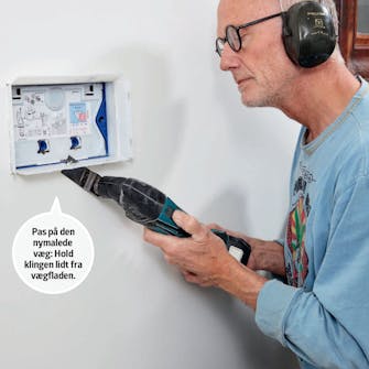 Skær kassen til, så den flugter med væggen. En multicutter er perfekt til opgaven, fordi den kan komme til alle vegne.