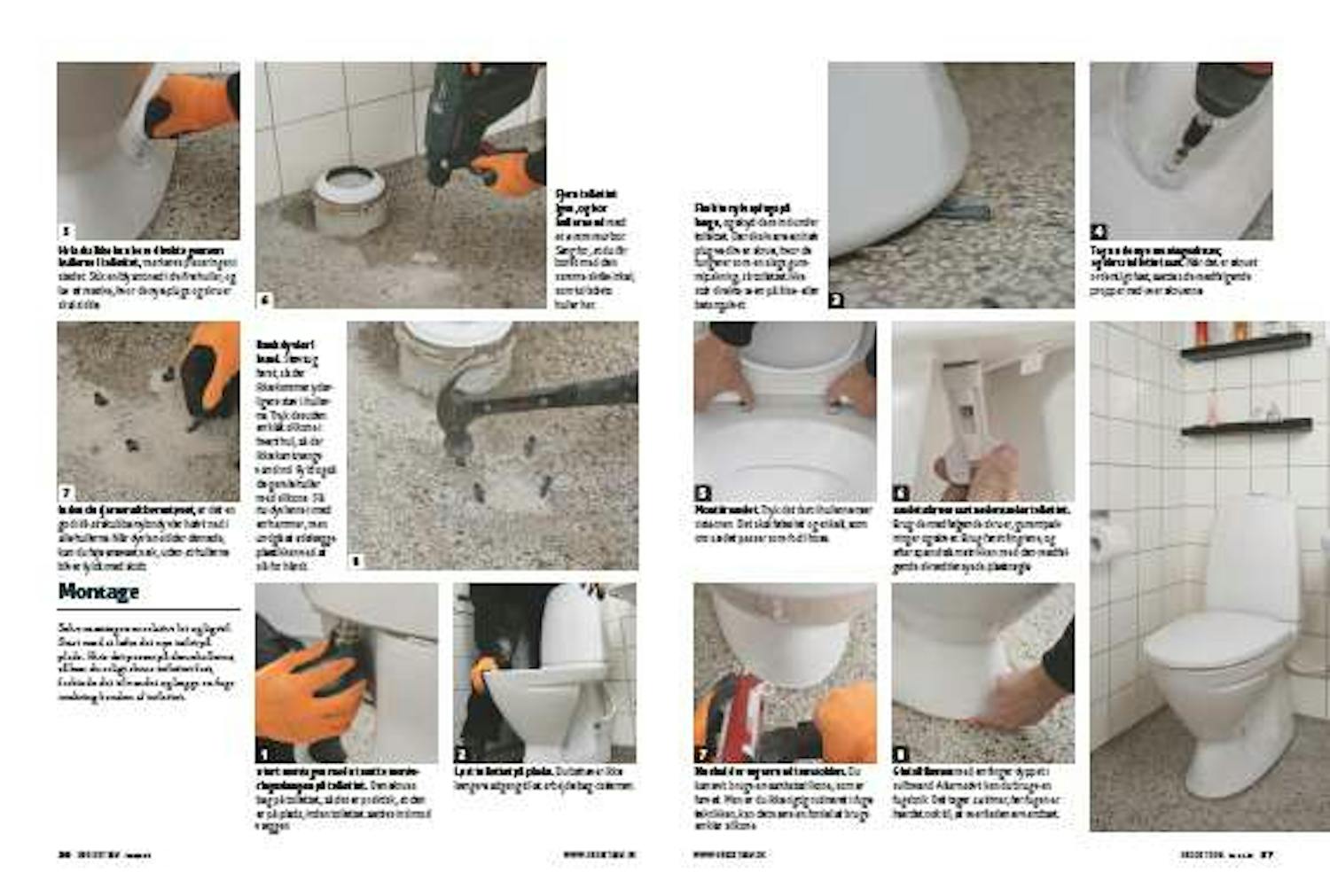Selve montagen er relativt let og ligetil. Start med at løfte det nye toilet på plads. Hvis det passer på skruehullerne, så kan du roligt skrue toilettet fast, forbinde det til vandet og lægge en fuge omkring bunden af toilettet.