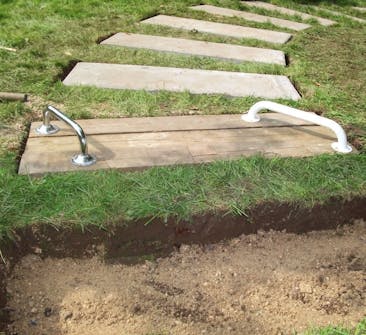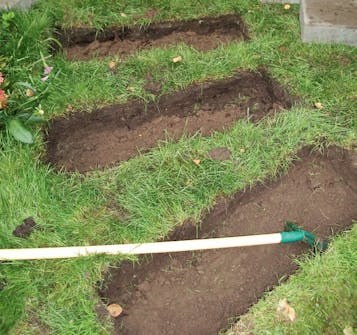 Stik ud med spaden omkring fliserne, før du flytter dem. Så har du det nøjagtige mål på, hvor de skal ligge. Sørg dog for, at der er et par centimeter ekstra omkring siderne.