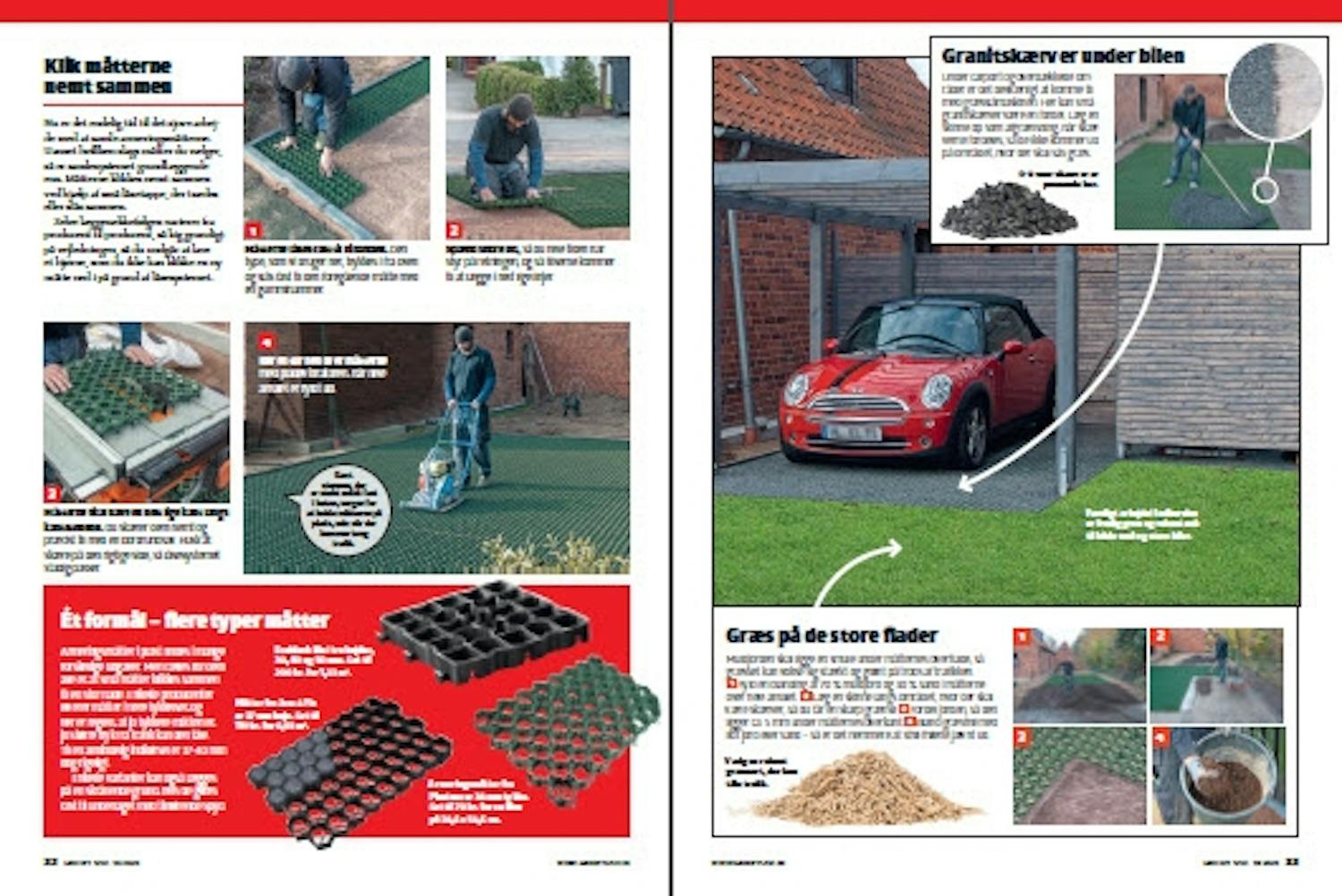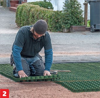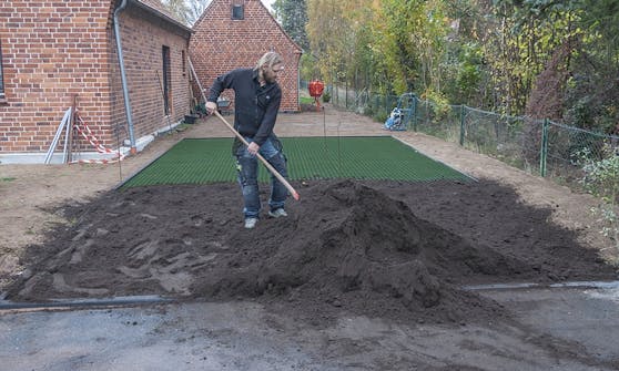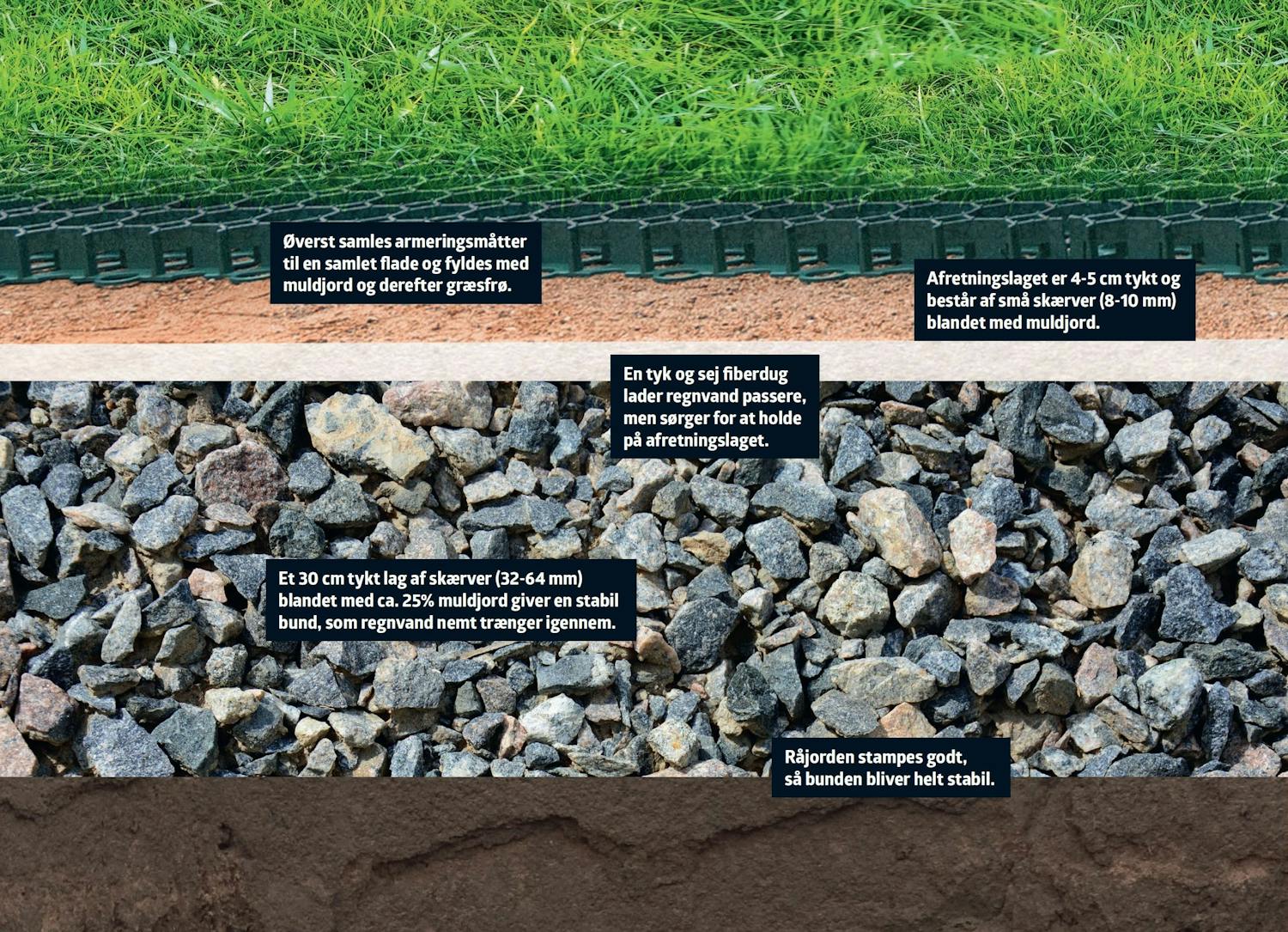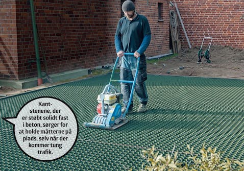 Muldjorden skal ligge en smule under måtternes overflade, så græsset kan vokse sig stærkt og grønt på trods af trafikken.