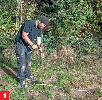 Tjek, at der er gravet mindst 40 cm ned på hele arealet. Riv derefter hele fladen “ren” for rødder, ukrudt m.m., og glat overfladen med en spade.