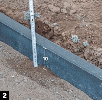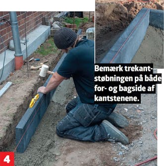 Spænd en snor ud, der markerer kantstenenes færdige højde. Så har du hele tiden noget at styre efter.