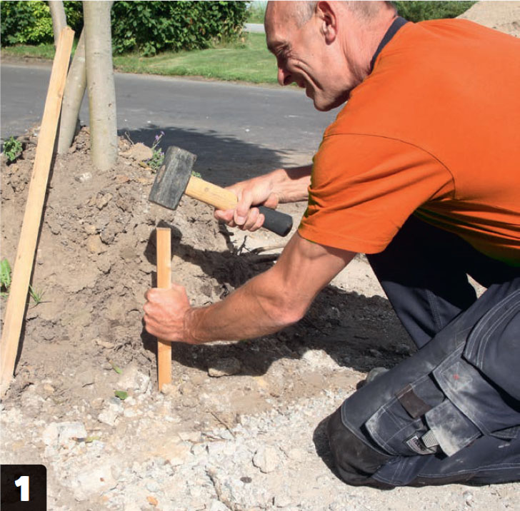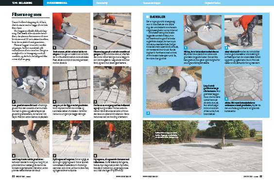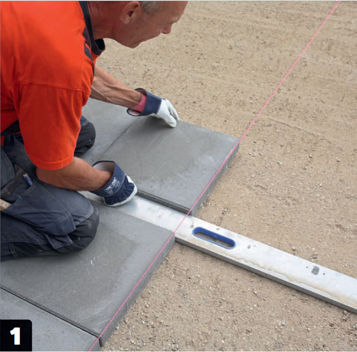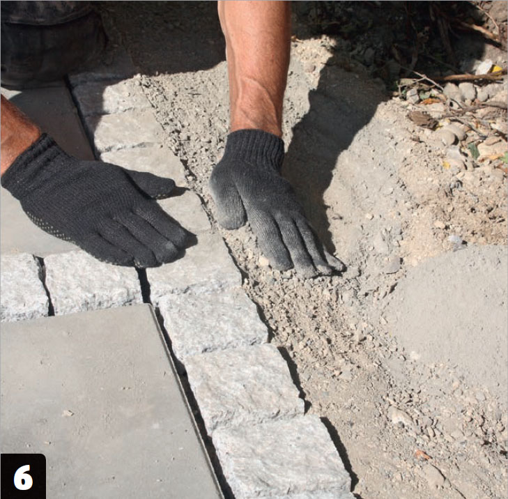 For at være sikker på, at de kan holde på belægningen, sættes de godt fast i fx færdigblandet tørbeton. Du kan også selv lave en jordfugtig beton, blandet af fire dele afretningsgrus og én del cement.