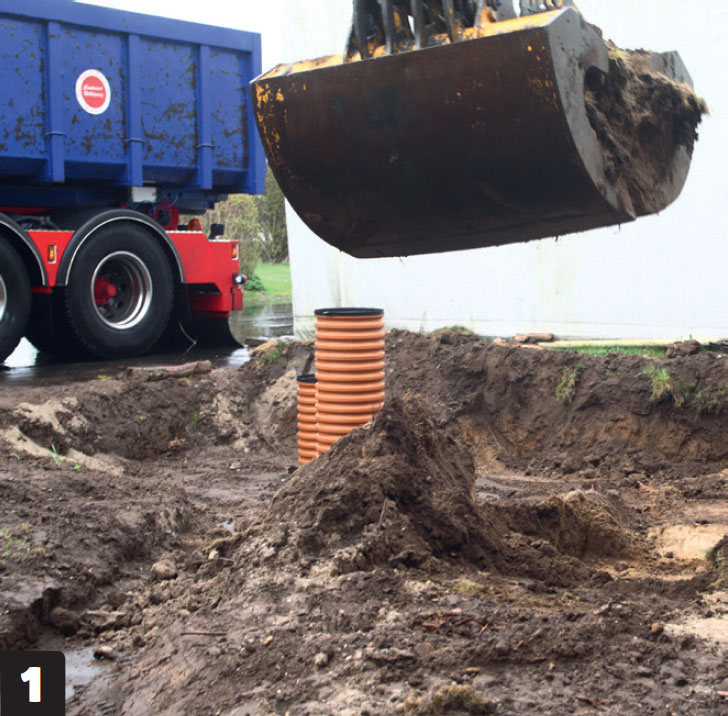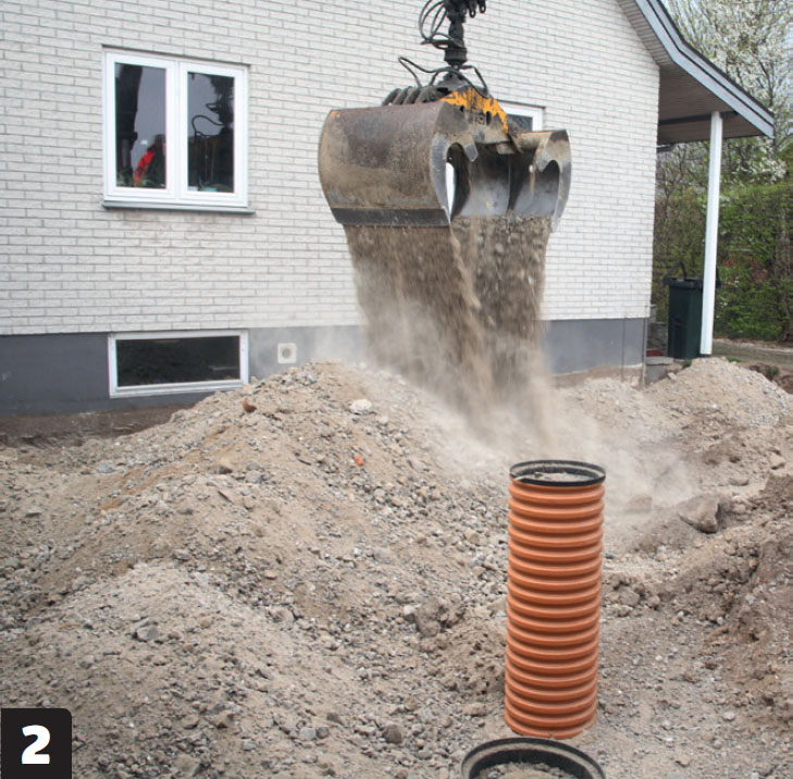 Fjern muldjorden. Det er vigtigt at komme helt ned til råjorden. Da der i vores tilfælde skal fjernes meget muldjord, har vi fået en vognmand til at grave den af og køre den væk med det samme.