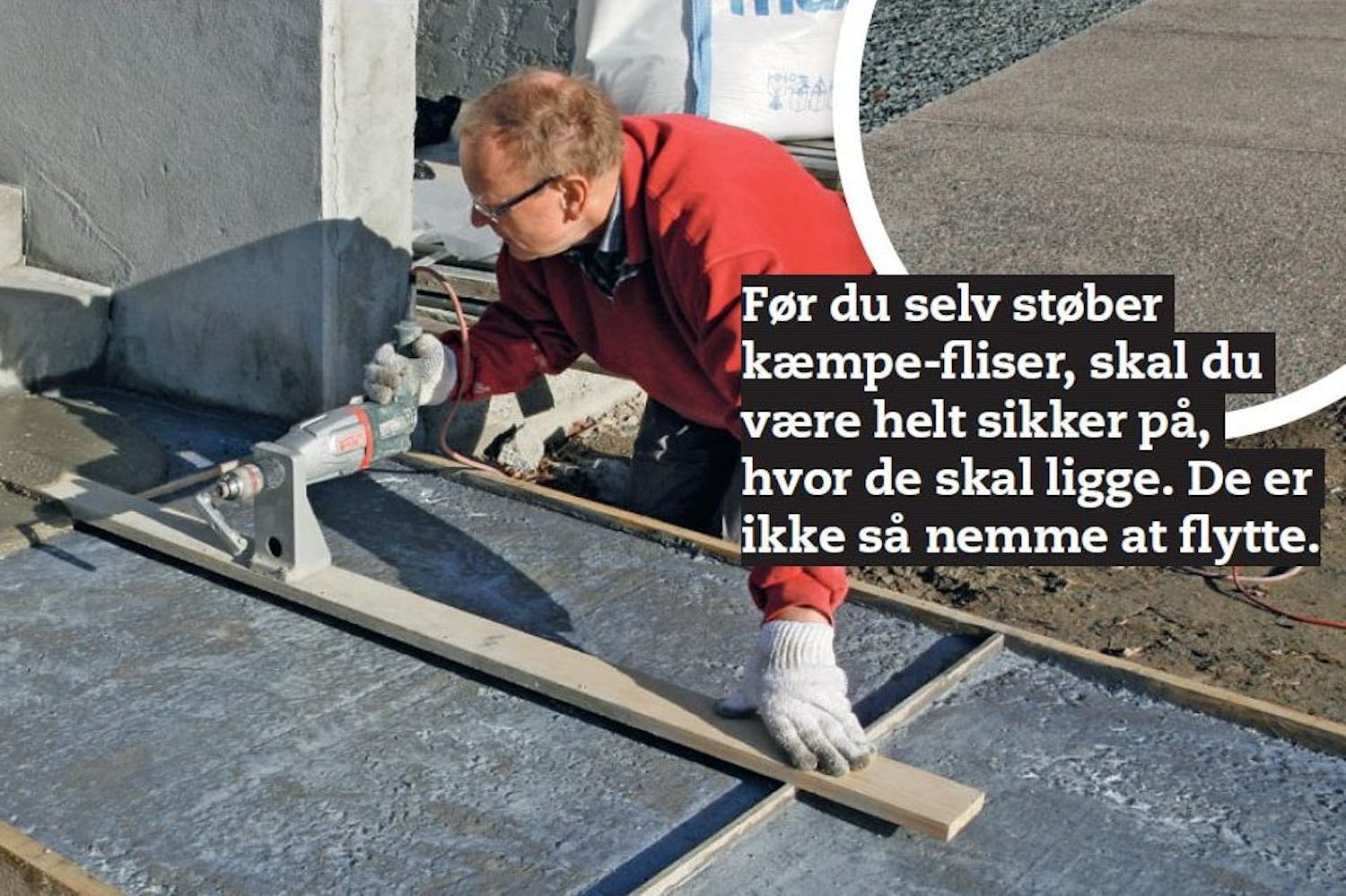 Kæmpefliserne, som bør armeres med indstøbte jernstænger eller -net, kan lægges på gangarealer, terrasser og kørebaner/indkørsler. Og afhængigt af hvor meget du gør ud af bundsikringen, kan de tåle rigtig tung trafik. Bortset fra teaklisterne er det en teknik, som anvendes til motorveje og landingsbaner.
