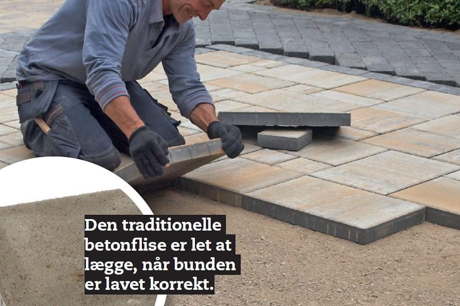I stedet for de traditionelle grå betonfliser kan du købe fliser, som ganske vist er lavet af beton, men ligner alt andet.