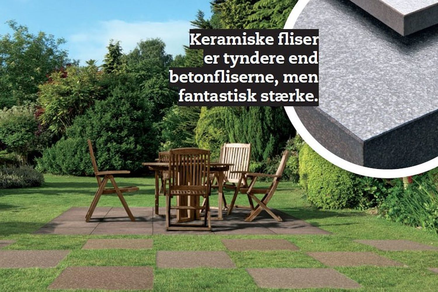 Havegangen, terrassen og trappen er steder, hvor du vil have rigtig gavn af keramiske fliser. De fås i masser af farver og størrelser, og fælles for dem er, at de er så tykke og brændt så hårdt, at de kan tåle hård frost, sne, grus og salt uden at blive grimme.