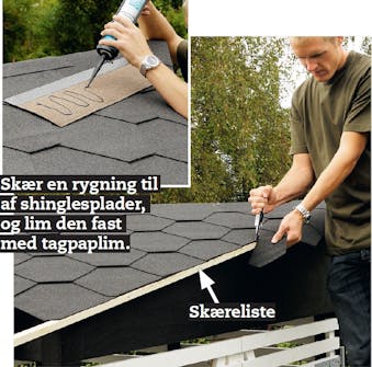 Taget beklædes med tagshingles, som sømmes fast med tagpapsøm.
