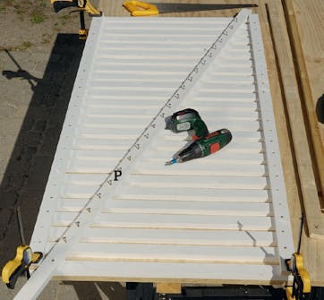 De to døre bygges på næsten samme måde som sidemodulerne. Blandt andet placeres beklædningslisterne med samme afstand, så derfor kan du genbrug e den målepind, du lavede til sidemodulerne.