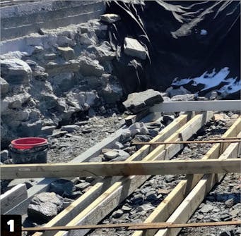 Mellem betonen og træremmen lægges der et lag murpap for at undgå fugtoptrængning i træremmene.