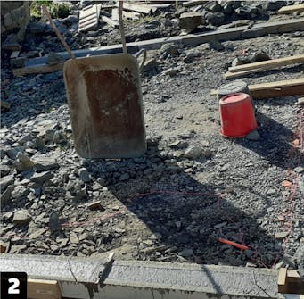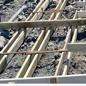 Støbeforskallingen består her af 45 x 95 mm reglar, og det er vigtigt, at forskallingen er solid, så den ikke giver sig, når du fylder op med beton.