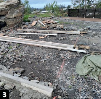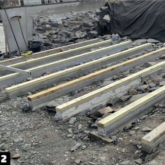 Betonen skal hærde et døgns tid eller to, alt efter temperaturen, før du kan gå videre. Næste skridt er at montere remmene af træ, hvilket går ret hurtigt, fordi underlaget allerede er rettet op.