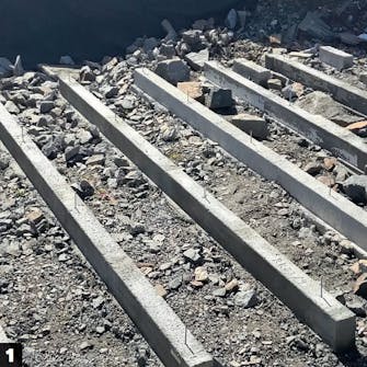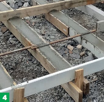 Det er en god idé at starte med at støbe den midterste og de to yderste remme/ fundamenter.