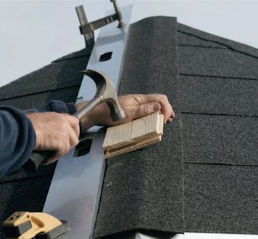 Søm nu tagpapbanen fast inden for markeringen til overlæg. Sømmene placeres med 10 cm’s afstand forskudt for hinanden. Bank hele fladen fast til taget vha. en træklods og en hammer.