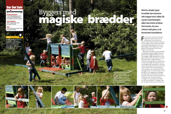 Herudover er princippet det samme som med byggebrædderne: Kanterne skæres af, så børnene ikke slår sig, og sporene udføres blot med kapsav og stemmejern.