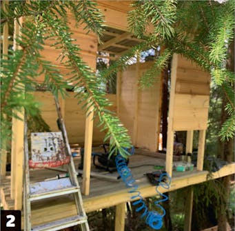 Hejsesystemer, hemmelige adgangsveje, udkigsposter, kighuller og alle de andre ting, en træhytte bør have, må alle opfindes hen ad vejen.