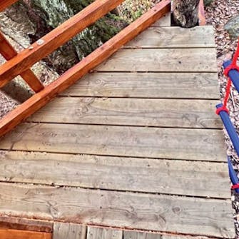 Det er vigtigt, at alt det blottede rå træ behandles grundigt med en heldækkende træbeskyttelse. Bundramme og spær er også udsatte, så de skal også have en omgang.