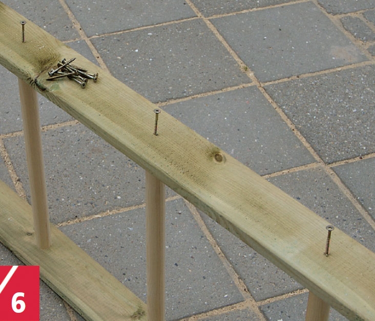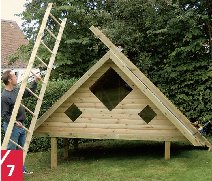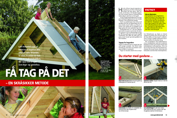 Skru stige og rutsjebane sammen med 4,0 x 40 mm skruer. Sav stige- og rutsjebanevanger af med en fukssvans.