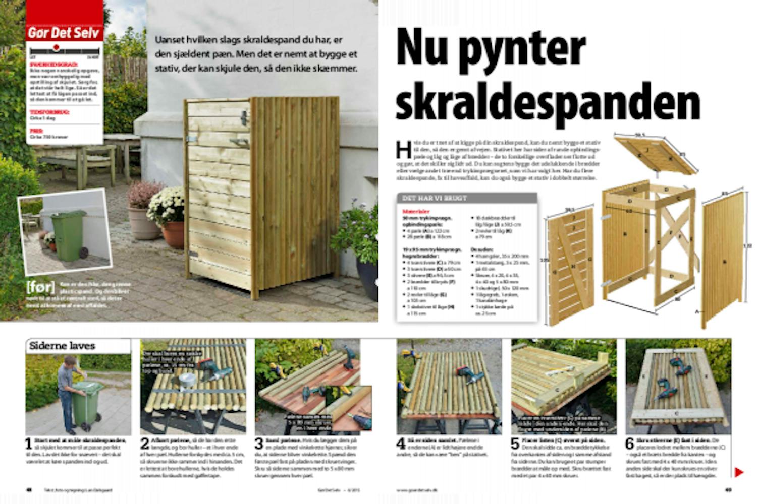 Start med at måle skraldespanden, så skjulet kommer til at passe perfekt til den. Lav det ikke for snævert - det skal være let at køre spanden ind og ud.