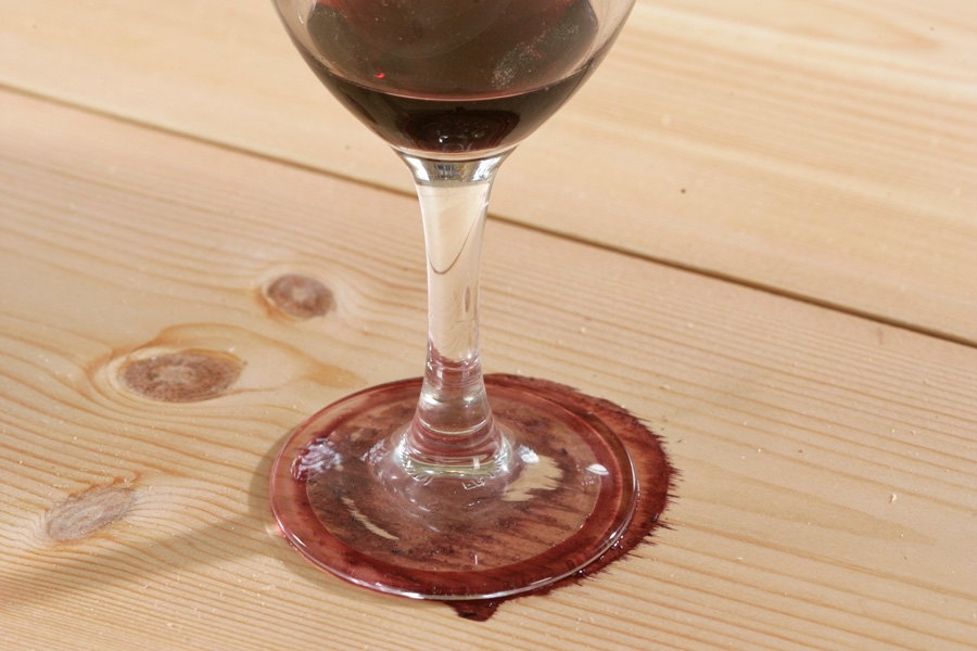 Du hælder i første omgang et tykt lag glycerin på pletten. Glycerin trækker farven ud af træet, og så kan pletten bleges helt væk.