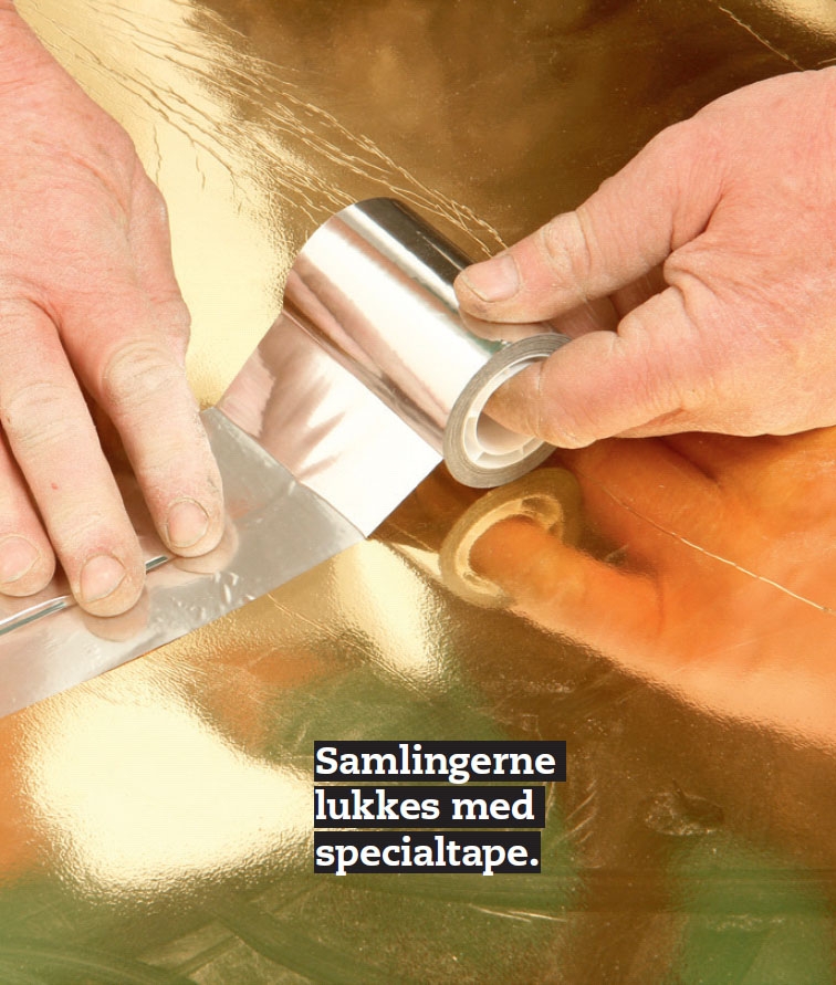 Der skal ikke laves overlapning, du støder bare kanterne op imod hinanden. Og det kraftige skummateriale er let at skære til med en hobbykniv, både i længden, og når du skal rundt om rør og hjørner.