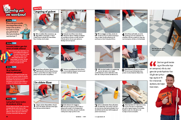 Vi lægger linoleumsfliserne som et svømmende gulv. Det betyder, at gulvet ikke er gjort fast, men blot ligger oven på det gamle gulv.