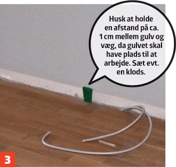 Læg strøerne klar med en indbyrdes afstand på ca. 50 cm. Bliver afstanden større end 60 cm, risikerer gulvet nemlig at give sig uhensigtsmæssigt meget.