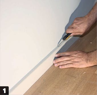 Lav et vandret snit i tapetet langs oversiden af fodpanelerne. Snittet gør, at tapetet ikke følger med fodpanelerne, når de bliver afmonteret.