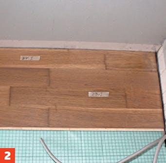Mærk gulvet op, så du er helt sikker på, i hvilken rækkefølge de respektive brædder har ligget. Vi markerer dem med malertape og et nummer.