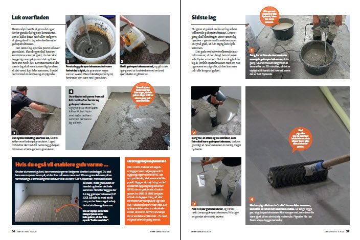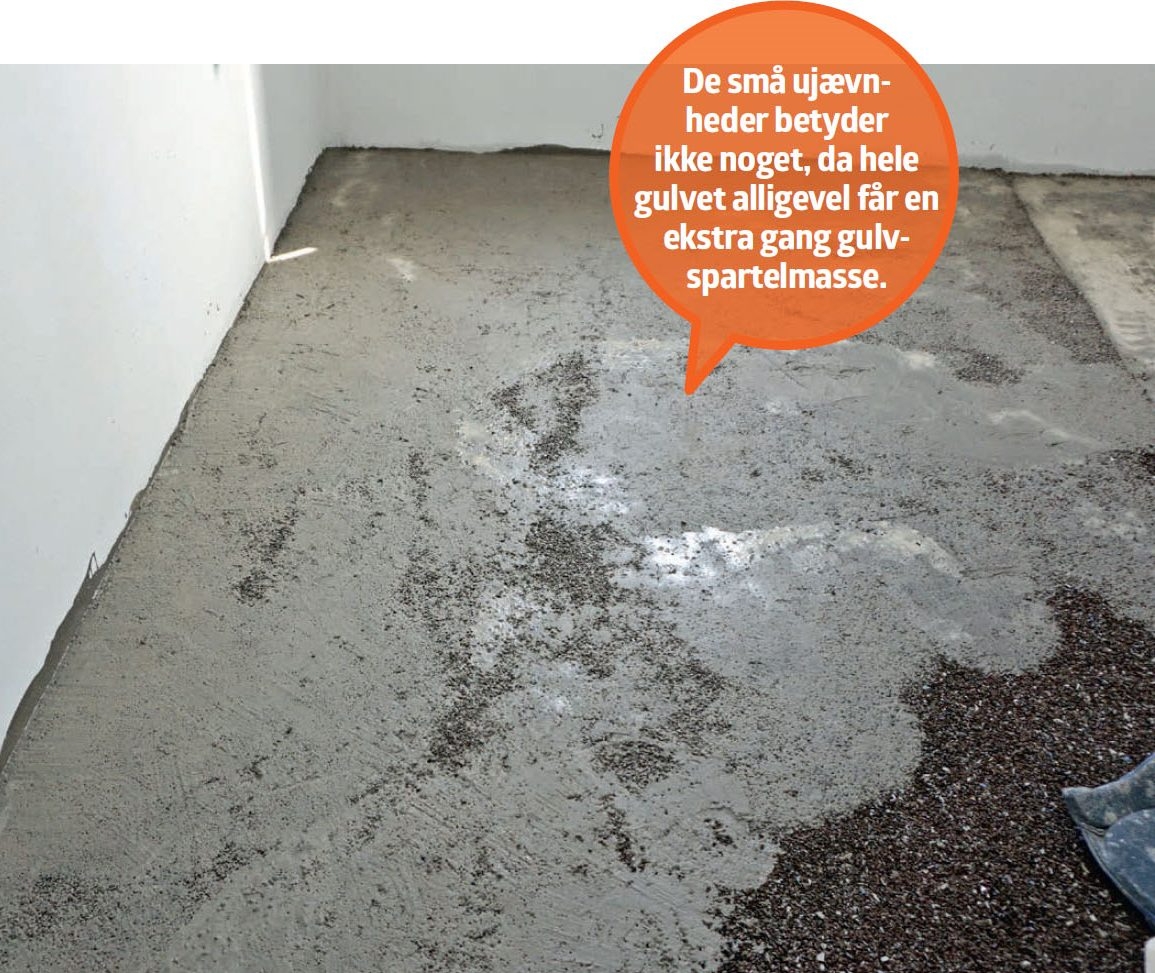 Første lag gulvspartelmasse skal være forholdsvis tykt, da granulatet suger som en svamp. Bliver blandingen for tynd, forsvinder den bare ned i granulatet.