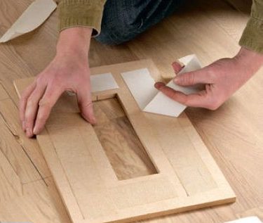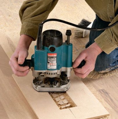 Fræs et hul til lusen efter skabelonen. Hullet skal have en dybde, der svarer til lusens tykkelse. Du kan ikke fræse vinkelrette hjørner, så lusens hjørner slibes til.