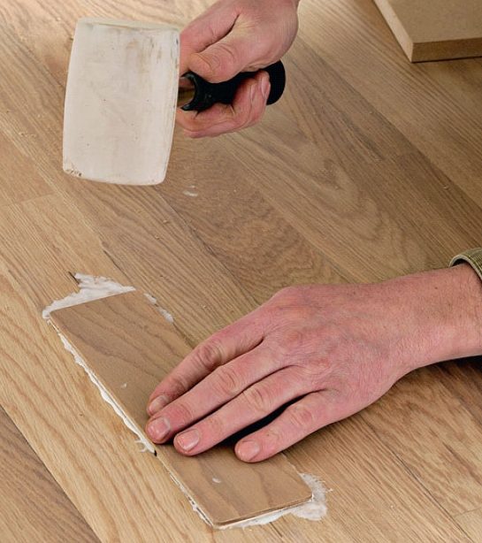 Du kan nøjes med at skifte den stav, der er ødelagt, med en såkaldt lus - et stykke træ skåret ud af en rest parketgulv.