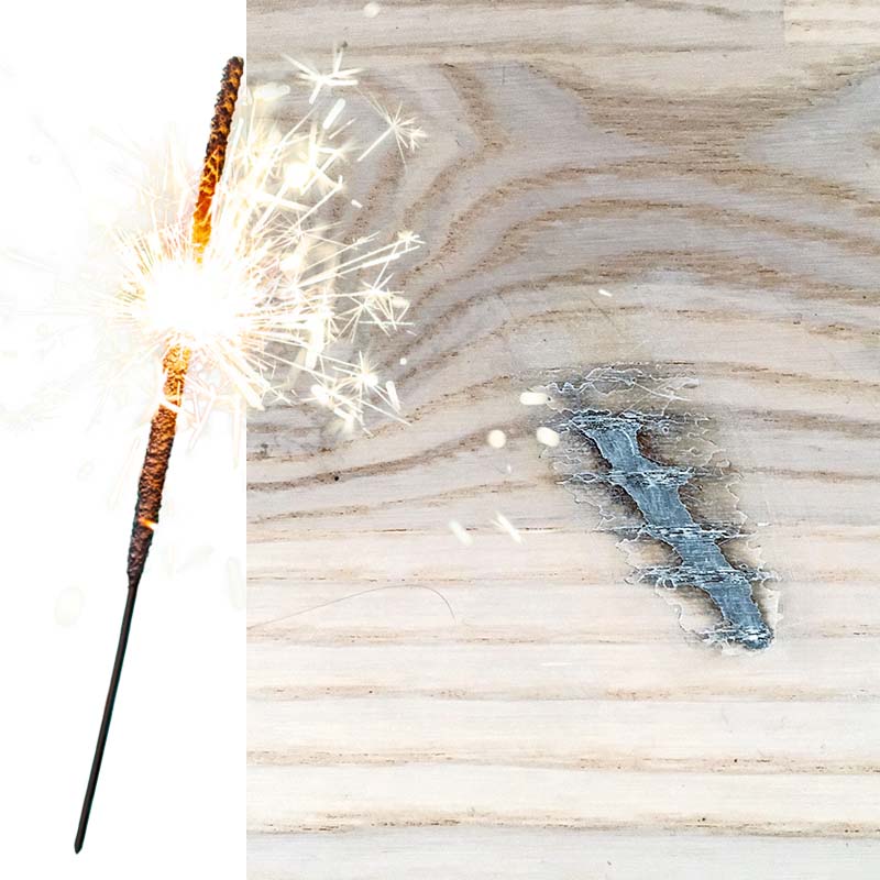 Teenagerens lidt for kåde adfærd med stjernekastere juleaften resulterede i brændemærker i det lyse Pergo-gulv. Ærgerligt, for laminatgulvet er lagt med fer og not, så det er ikke muligt blot at skifte det stykke med brænde mærker i.
