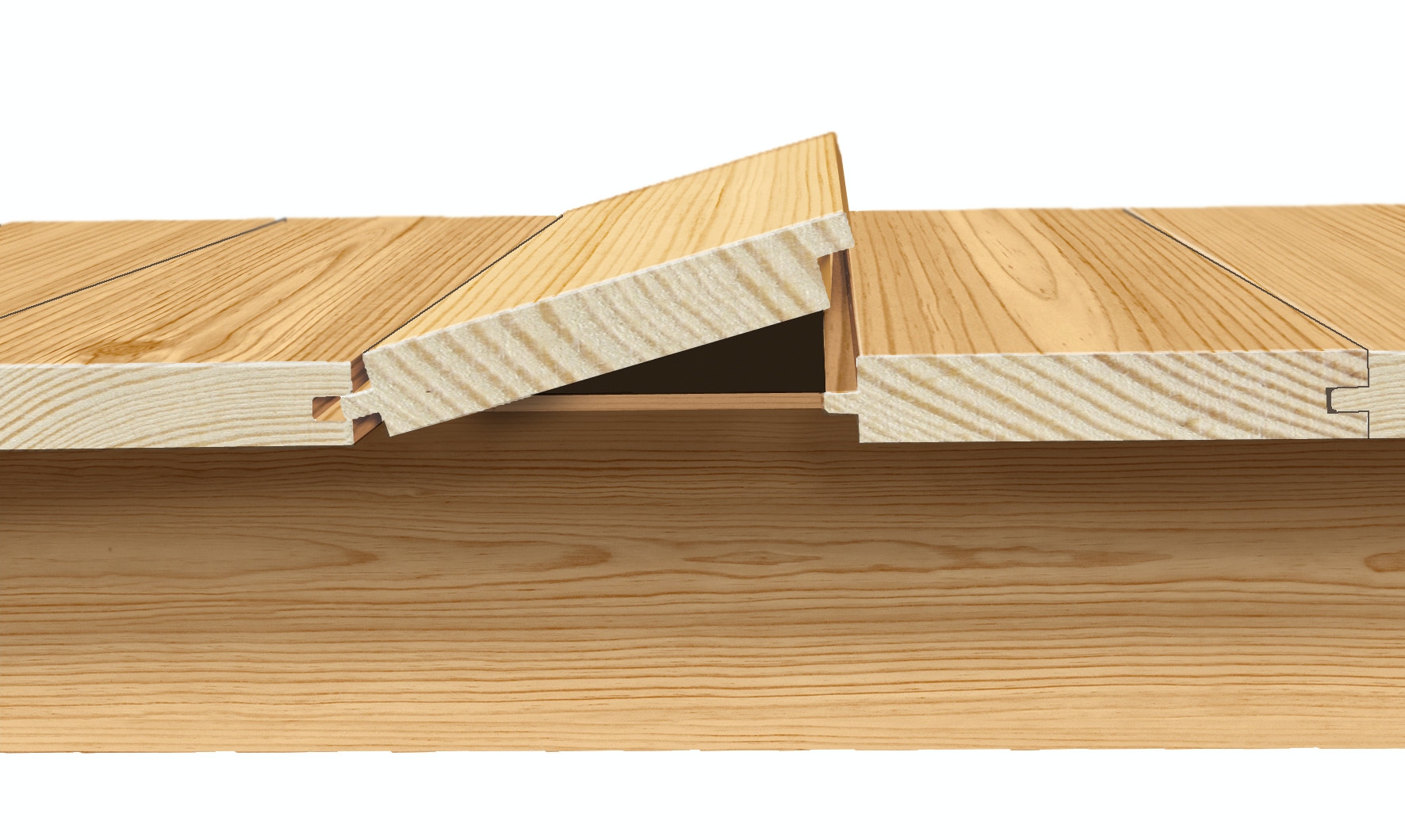 Hiv sømmene op, eller bank dem helt igennem. I hver ende saves et hul i brættet, så du kan få fat og om nødvendigt hive stumpen ud under panelerne. Sav så brættet igennem på langs med en rundsav, hvor klingedybden er indstillet til brættets tykkelse, og stil klingen til et skråt snit et par mm fra feren, så brættet kan løftes fri. Tilpas det nye bræt ved at fjerne den nederste del af noten, og høvl feren skrå på undersiden. Så kan brættet komme på plads.