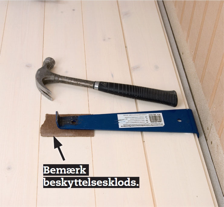 De sidste hele brædder kan ikke slås på plads med bankeklods. Brug i stedet et gulvjern. Skal brædderne samles med fer og not i ende samlingerne, er gulvjernet også et godt hjælpeværktøj.
