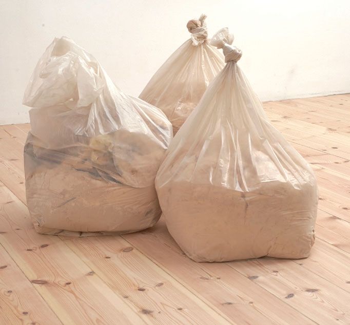 Vi gør rent for støv. Maskinerne har samlet tre sække, der er støv overalt: på vægge og lofter og på dig og værktøjet, og alt kostes og støvsuges og tørres af.