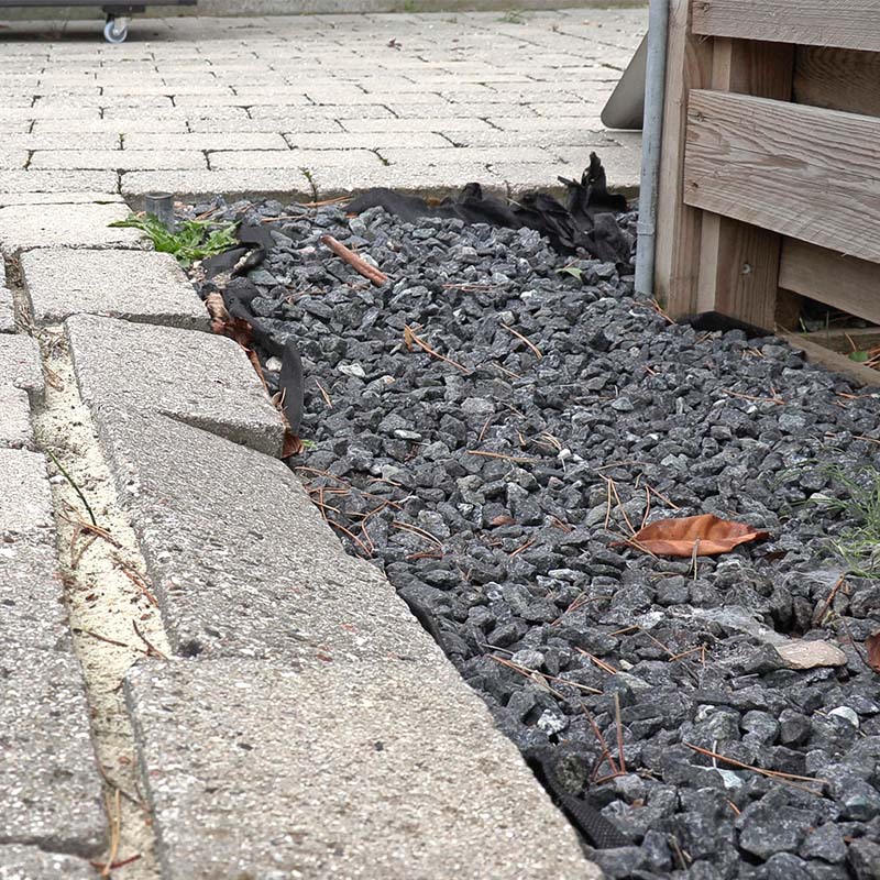Løsning: Når du skal lægge fliser eller belægningssten, skal du sørge for et solidt, komprimeret underlag og herefter et lag afretningsgrus. Så kan du vibrere fliserne fast i gruset med en pladevibrator. En fiberdug under fliserne vil forhindre fliserne i at ligge stabilt, og den forhindrer ikke ukrudt.