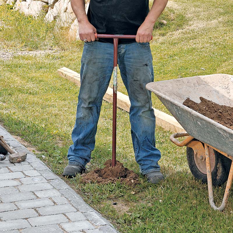 Problem: De yderste fliser skrider, fordi der ikke er noget til at holde på dem. Fliserne bliver skubbet ud i jorden ved siden af.