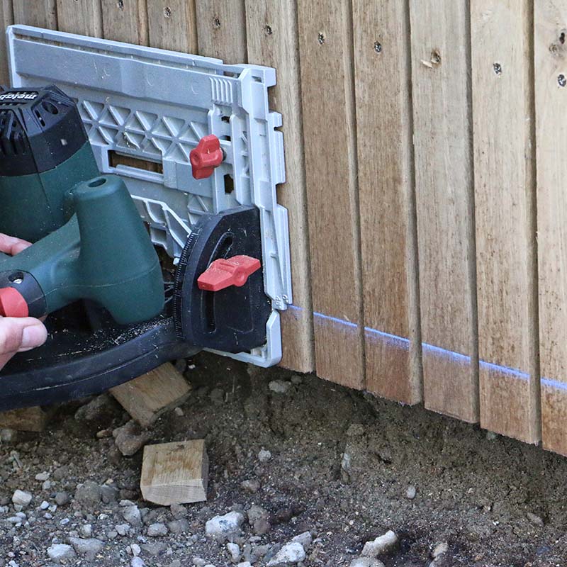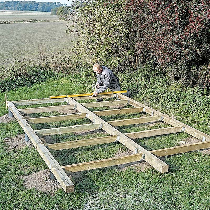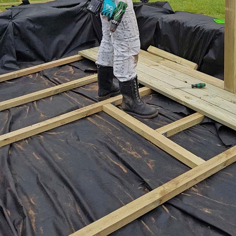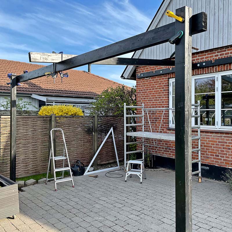 For hvis du ikke sørger for, at der er cirka 10 cm afstand fra træet ned til jorden, vil opsprøjt fra regn, liggende sne og vådt græs betyde, at træet bliver fugtigt, og så rådner det.