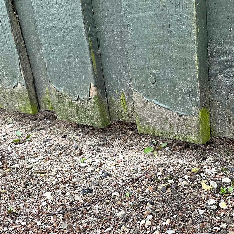 Problem: De få millimeter ned til jorden har gjort træet fugtigt i så lang tid, at brædderne nu rådner.